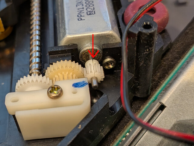 まあ気持ち悪いので、ひとまずドリキャスから外して余っているGDドライブユニットのモーター(もしくはピニオンギア) を移植しますかねー。・・・って、こっちにも亀裂がww