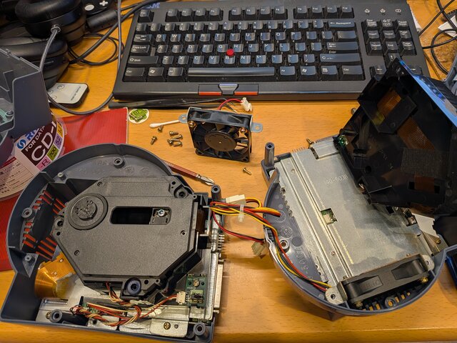 とりあえず今後の実験等で何かと便利そうなので、CD-Rの認識率がいい方をメイン機とすべく、静音ファンに換装済み(?)のもう一台の方とファンを交換しておきました (前者はめちゃくちゃファンがうるさい)。