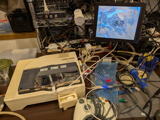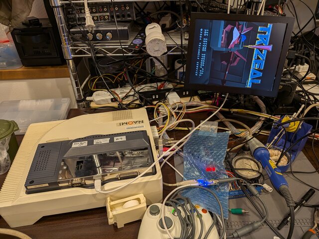 今日はNAOMIでネットワークブートでゲームを動かしてみようと思います。原理的には、先日DIMMモジュールのファームウェア更新プログラムを流し込んだときと同じ要領で、キーがオールゼロのキーチップを装着した状態で、デコードしたプログラム本体を流し込めば行けるはず・・・。