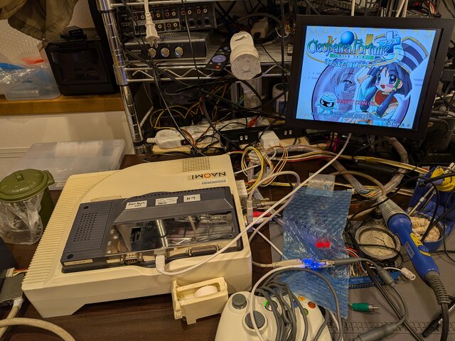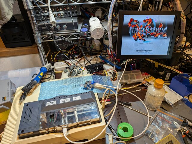 が、全然うまく行きません。転送自体は成功して、立ち上がりかけるんですが、途中でハングアップしてしまうようです。たとえば斑鳩は縦画面設定に切り替わるところまではいくものの、その後画面がブラックアウトしたままに。クレオパトラフォーチュンプラスも、画面が真っ黒なままで立ち上がらず。Laキーボードュは「NOW LOADING...」と表示されたところで止まります。