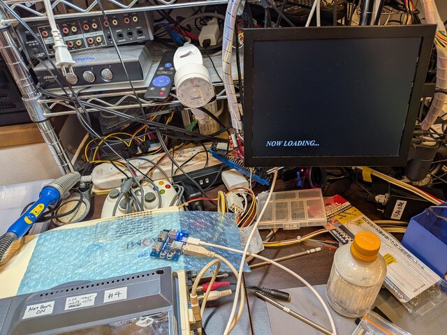 起動する直前にテストボタンを押すとゲームごとのテストモードに入ることはできるので、転送に失敗しているというわけではなさそうです。うーん、何だろう。