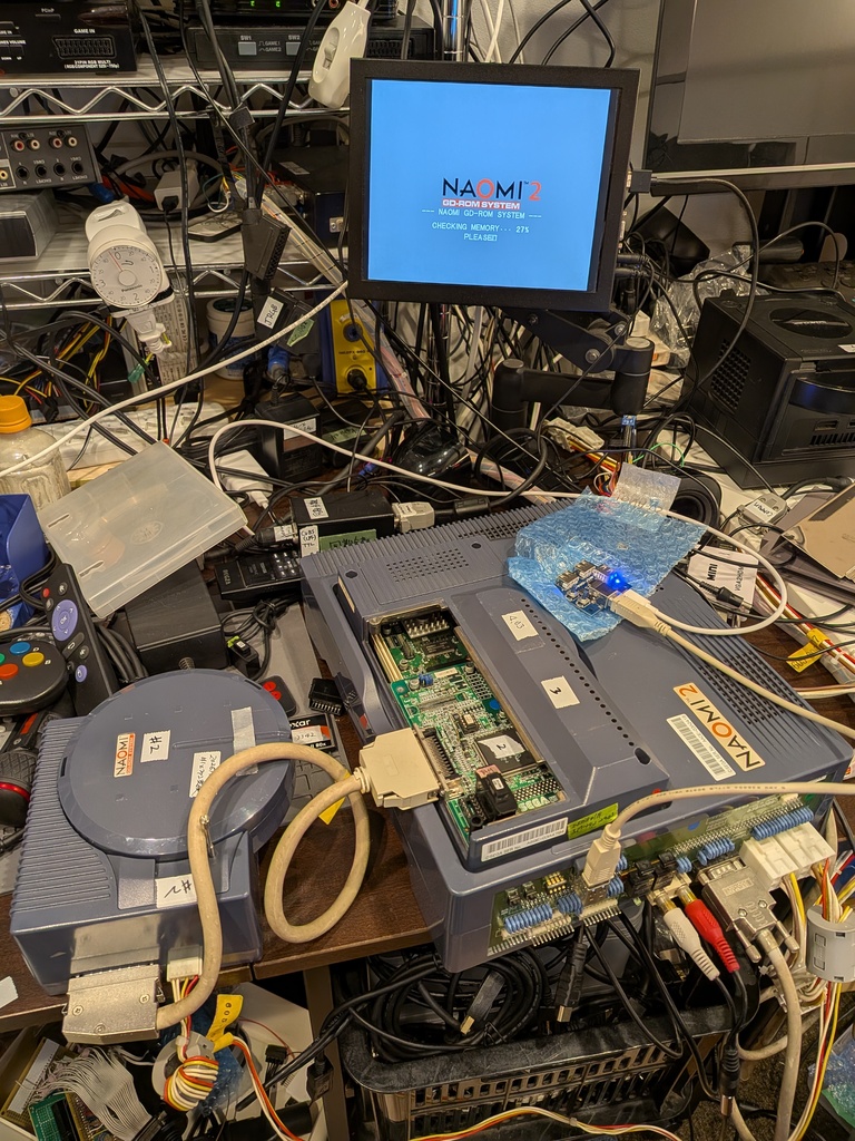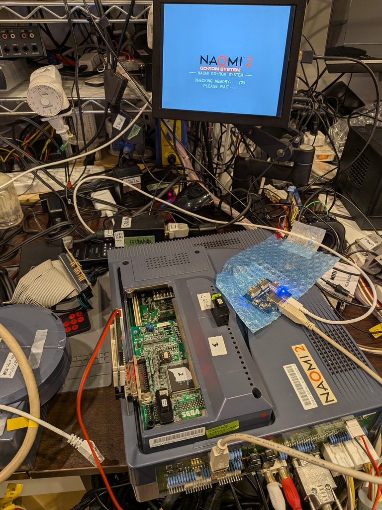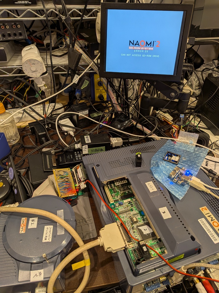 今更ながら、4.03のファームウェアが書かれたDIMMボード + 非Net DIMMの小基板の構成で、CFからゲームを起動できるのかの実験をしてみました。とりあえず去年の11月に作った、GDドライブの認識率を上げるパッチを当てた状態で実験。