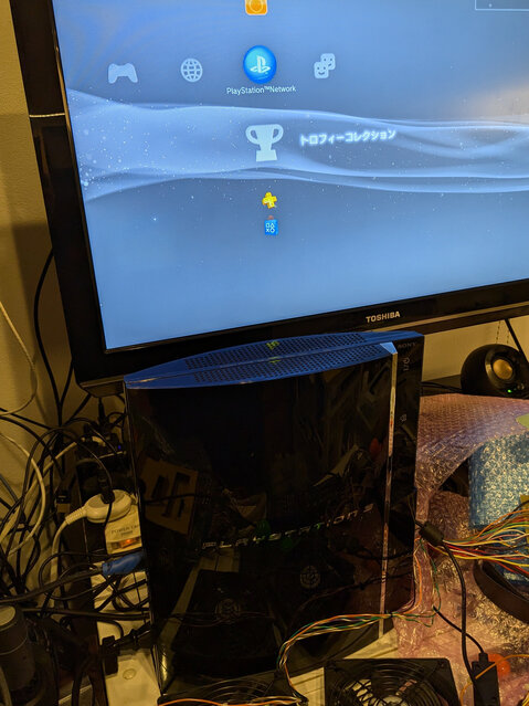 ドライブが故障して、ディスクが取り出せなくなってしまったという初期型PS3本体を譲って頂きました。なるほど、確かに普通に起動はするけど、ディスクがまったく出てこないですねw。いやでもうちに2台ある初期型PS3は、どちらも起動すらしてくれない状態なので、大変ありがたいです。ドライブは・・・まあそのうち分解して何とかしましょう。