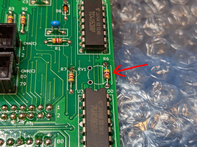 テスト用にCPicS1を新規に組み立ててみたんですが、ワンダー3の色化け対策回路を4.7kΩの固定抵抗 2個で作ったところ、RetroTINK 5X-Proで改善がイマイチな結果となりました。