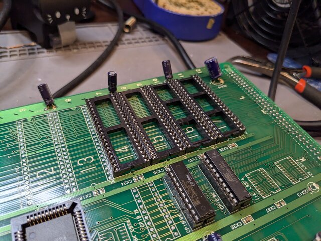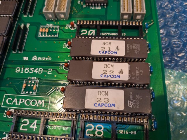 後でまた何か別のものを動かす可能性も考えて、ソケットを2個追加で実装しました (が、よく考えると、プログラムROMが12Mbitを超えているタイトルって、CPSチェンジャー版のストゼロを除くと、マッスルボマーとマッスルボマーデュオだけかも・・・?w)