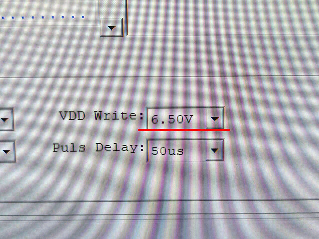 ちなみに、32MbitのデータをXgecu T56でM27C322に焼く際、当初デフォルトの設定で実施したらM27C160のときと同様に失敗しました。聞いていた通り、M27C160のときと同様に、VDDを6.25Vから6.50Vに上げてやったら超安定。