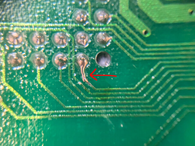 はんだごてを突っ込んで補修。