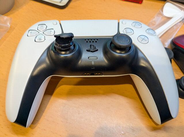左側のスティックの上端のゴムが破れてしまったデュアルセンス。